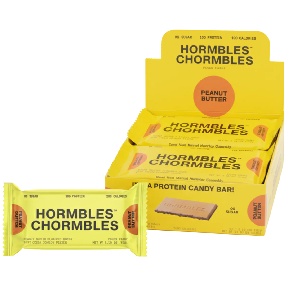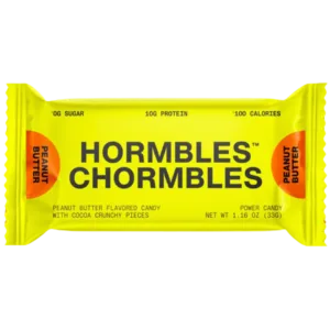 Hormbles Chormbles Peanut Butter Protein Candy Bars har en cremet smag af jordnøddesmør kombineret med knasende kakaostykker, der giver en overbærende snackoplevelse. Hver bar indeholder 10 g protein, 0 g sukker og 100 kalorier, hvilket gør den til en tilfredsstillende, skyldfri godbid, der afbalancerer smag og ernæring.